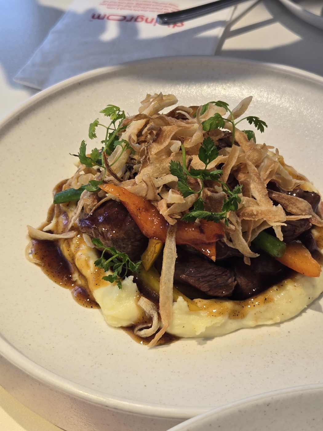 비프 큐브 스테이크는 매쉬드 포테이토가 깔려있다. 이게 맛의 킥이라고 생각된다.