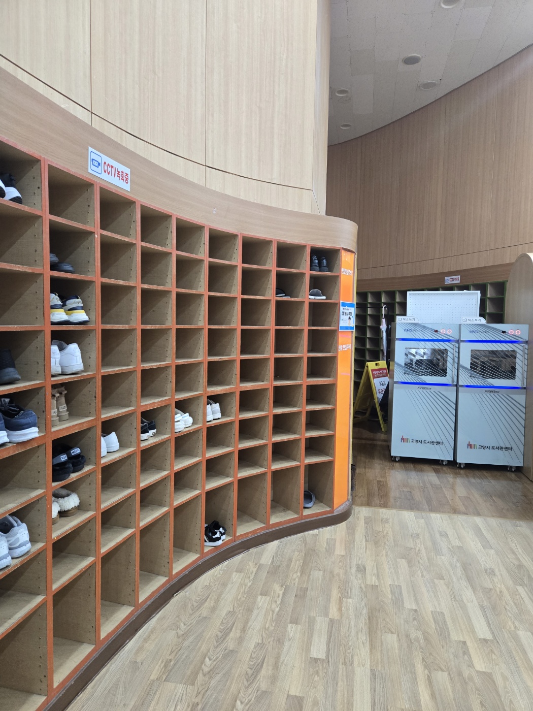 도서관 입구로 들어와서 신발을 보관하고 즐거운 마음으로 입장한다.