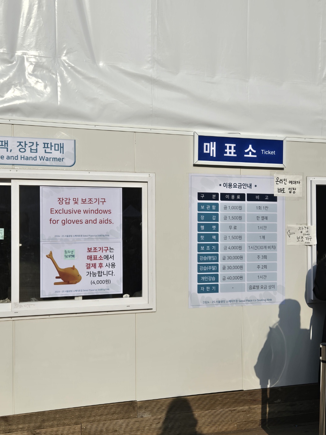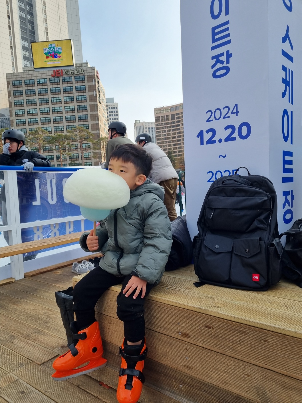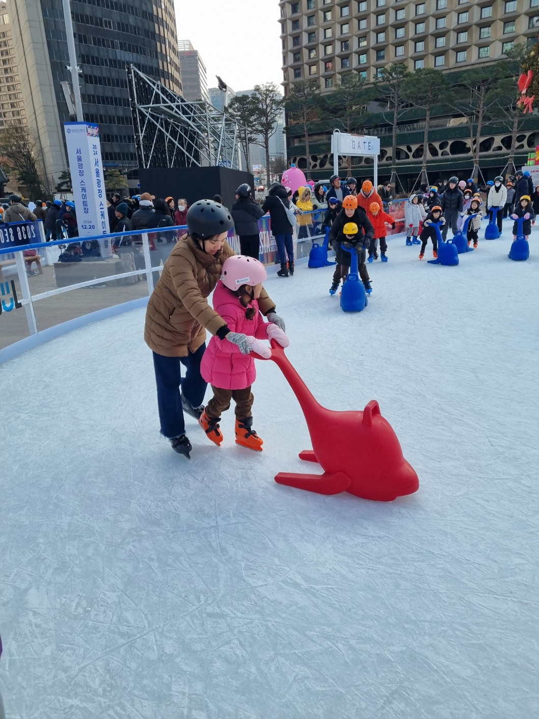 스키, 스노우보드 등은 한번 가려면 마음을 먹고 계획을 제대로 세워야 하기에 쉽게 엄두가 안났다. 그러던 와중에 서울시청을 방문할 일이 있어서 갔다가 스케이트장 운영하고 있는 걸 보고 '즉흥적'으로 놀다오게 되었다. 장갑도 없이 갔던 용감한 엄마는 다이소를 찾아서 급하게 준비해서 입장하였다.